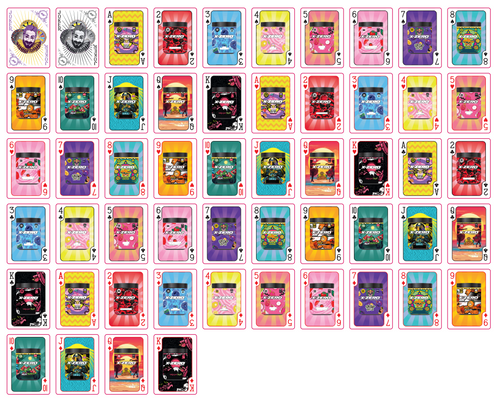 Made from 310gsm paper, the deck contains 54 playing cards including two jokers and the artwork contains current and future flavor designs.